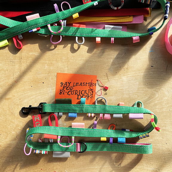 Hazel Meyer is an artist who thinks about lesbian-feminists, incontinent-queers, and gender-outlaws in her interdisciplinary practice. Hazel also makes accessories for humans and dogs under the names: GAY LEASHES for BI-CURIOUS DOGS, and DINGDONG.