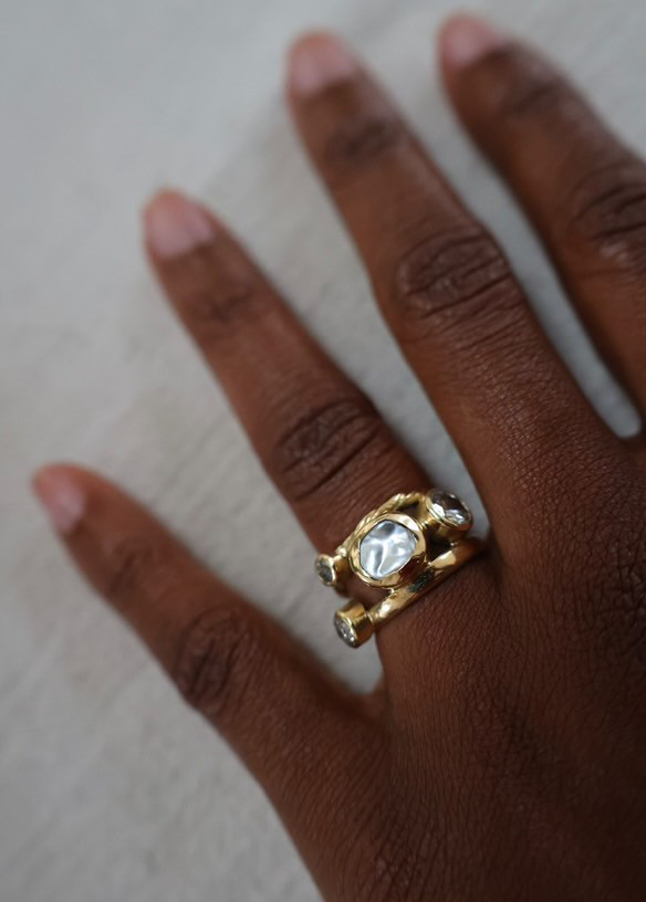 Yelyzaveta Karabaza’s love for jewelry began in childhood, captivated by her mother’s heirlooms and stories in post-Soviet Ukraine. Inspired by her Ukrainian and Turkish heritage—and her uncle, a classically trained goldsmith—she began making jewelry as a pre-teen. Today, Karabaza handcrafts timeless, comforting pieces in her East Vancouver studio using traditional metalsmithing techniques.