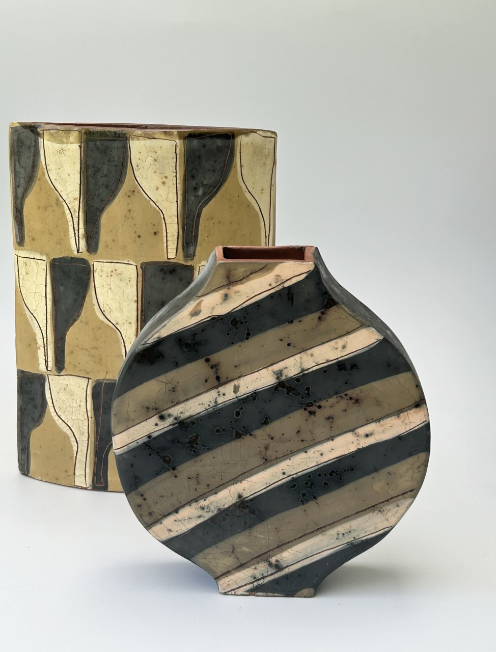 Loree Lane creates unique ceramic pieces influenced by abstract expressionism. Hand-built with coloured clay and Nerikomi techniques, her pieces blend form, colour and texture, living in space as artworks rather than functional pieces.
