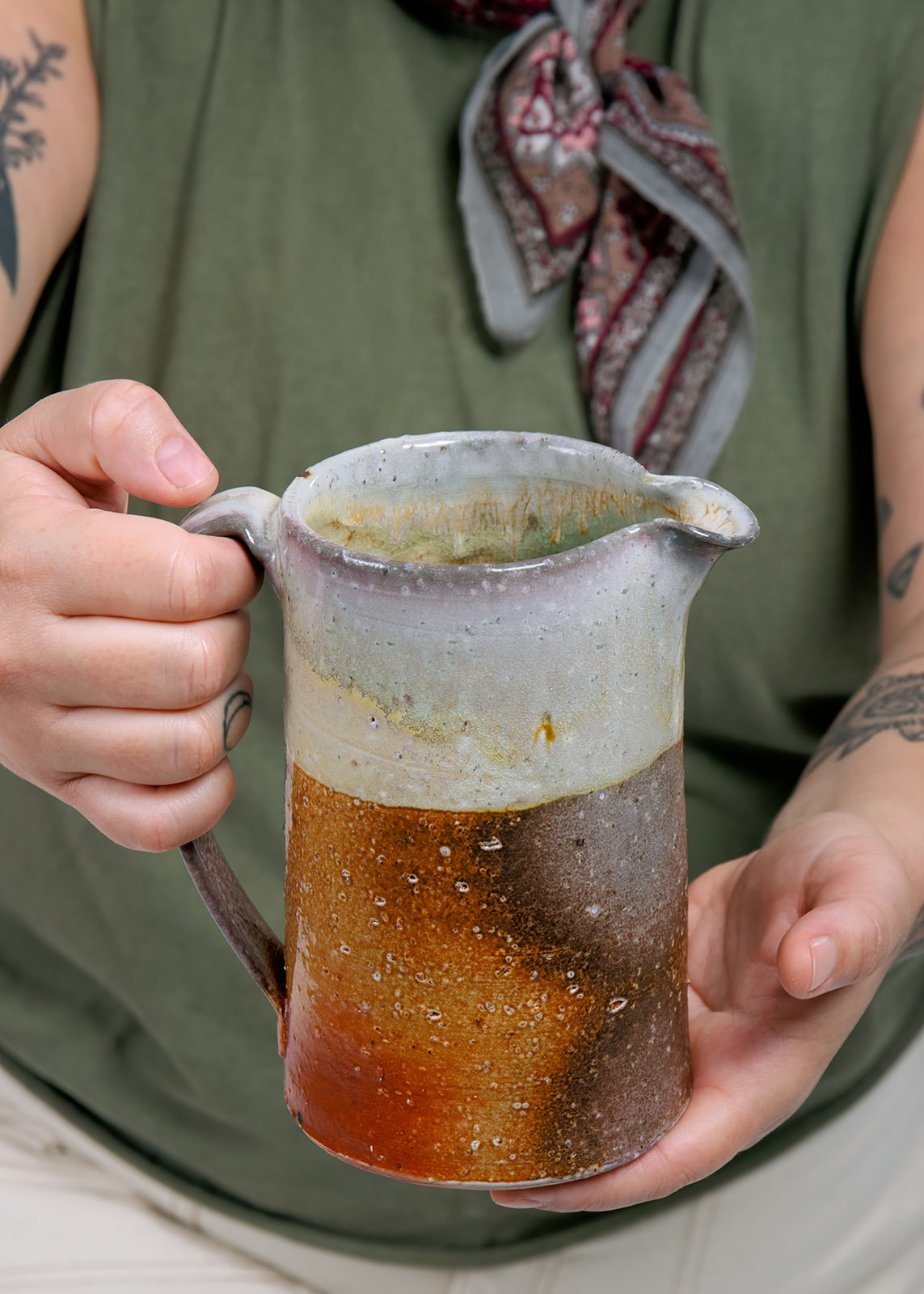 Kerria Gray is a ceramicist making functional work using wood, soda, and gas firings, resulting in a unique surface on each pot. She carefully considers colour, texture, form, and functionality in her processes.