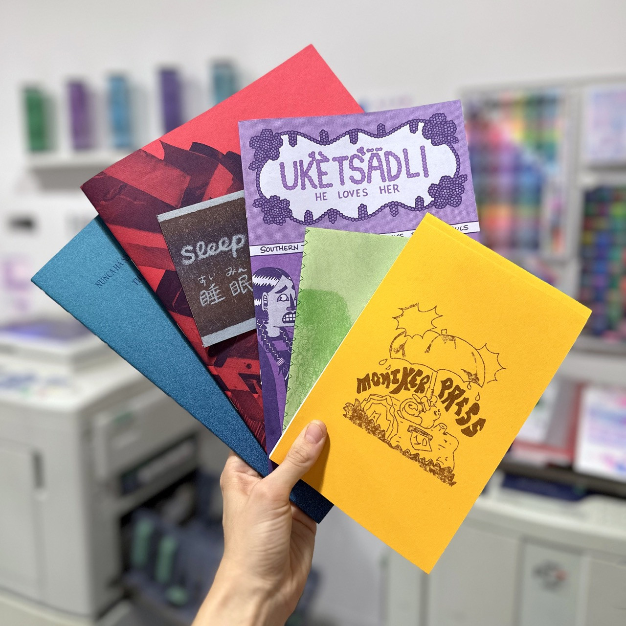 Moniker Press is a small risograph print studio in Vancouver and publishing project that works collaboratively with artists to produce small editions of books, zines, and print ephemera.